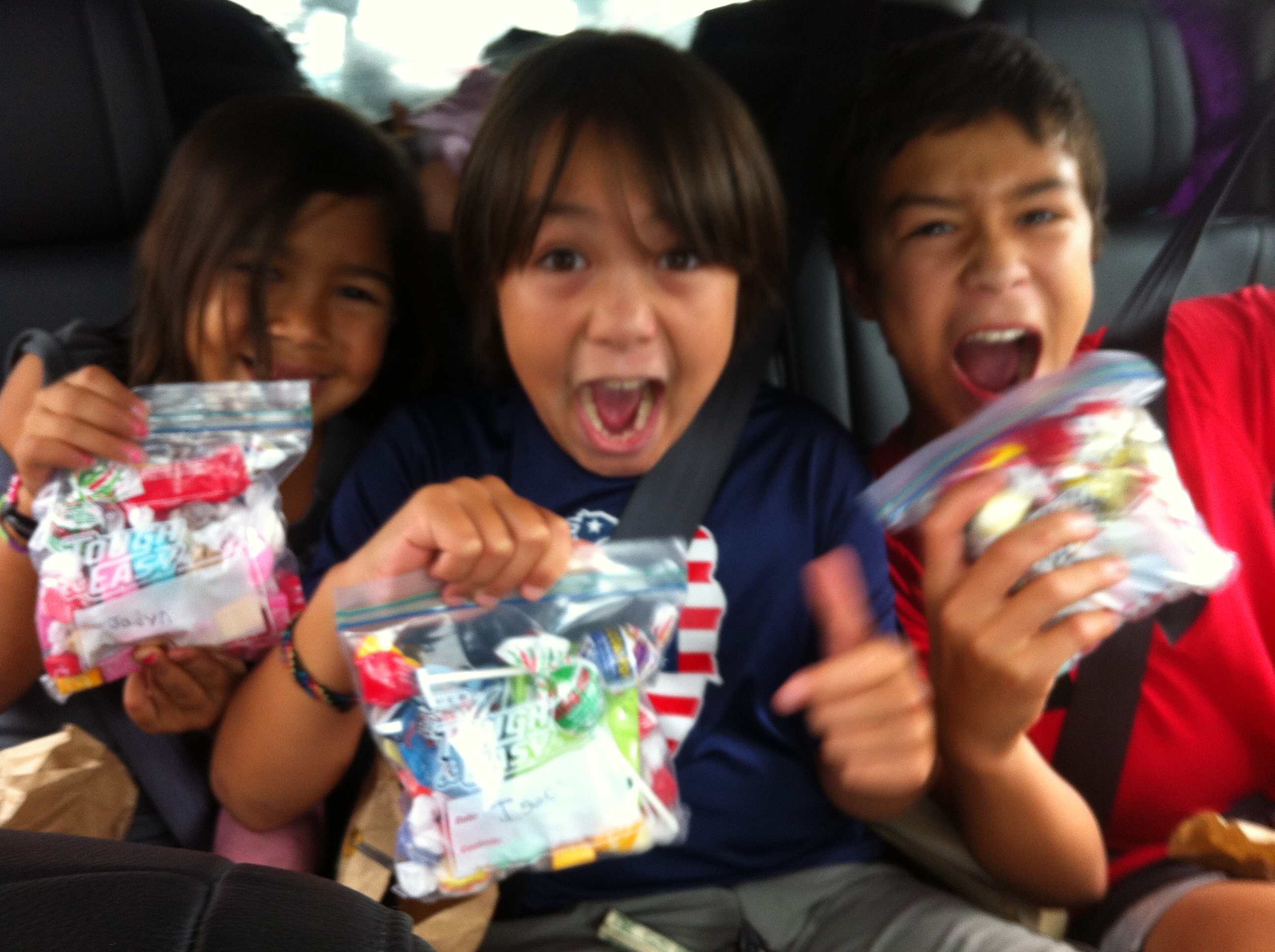 Travel Goody Bags – Our friends, the Denman’s decorated brown paper sacks with pictures and words that describe each of us. Then they filled each bag with CANDY. The kids were thrilled! The candy lasted us for a couple weeks!!