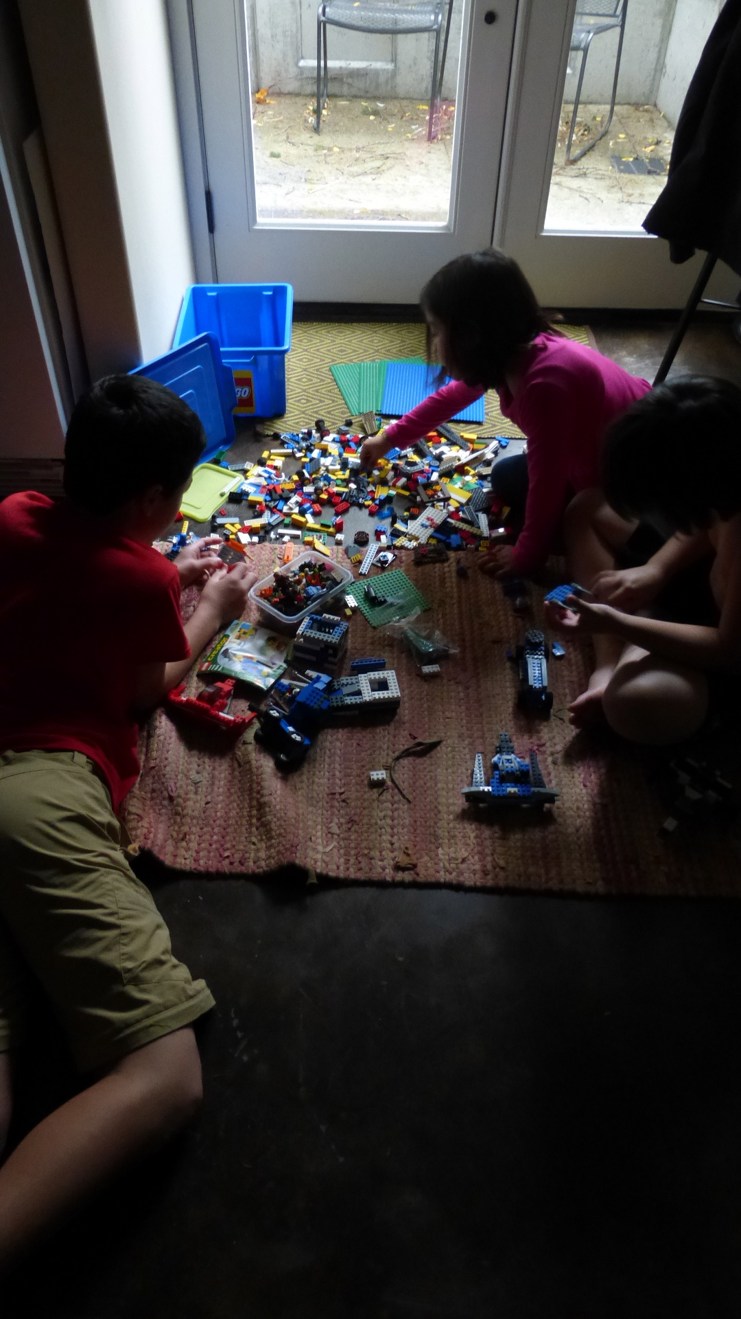 Here are some photos from some of our more “normal” days. One Saturday morning, the power even went out, so we played LIFE for the first time in the dark with our camp lanterns, and then the kids played LEGOS by the light of the window while Don headed out to work.