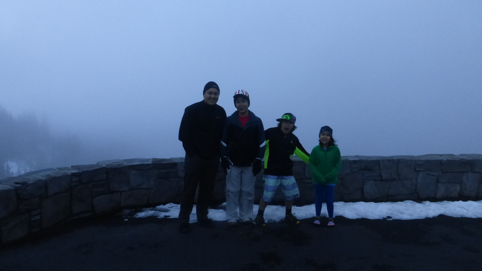 Well, today, after loading up, grabbing lunch, and driving to ONP, we didn’t arrive to Hurricane Ridge until the late afternoon. And guess what we saw . . . NOTHING! No peaks, no views, barely any trees. We could hardly see each other because of the thick fog! I died laughing when Gabe said, “Oh, there you are!” when we had gone a bit ahead of him to find a short trail and called back to him to follow us.