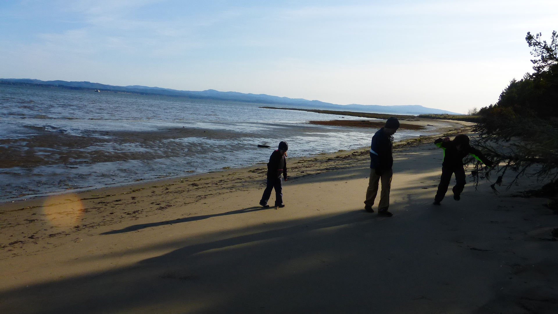 After the kids read for a while, they headed out on their own, about a block or two down to the beach to look for a geocache while Don and I worked. An hour later, I called just to make sure they were alive and well. Sure enough, they were wet, sandy, cold, and laughing.