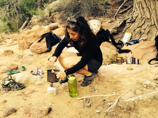 Don has an awesome Snowpeak GigaPower Stove that makes it easy to heat up anything quickly. Raman noodles, Mountain House Meals, or even simple organic rice mixes with organic canned chicken work so well. The kids love eating out of their Snowpeak Titanium mugs with their titanium sporks! To them, it is all fine dining.
