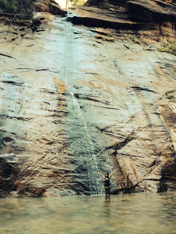 There was a part of me that thought we’d get to the end of Riverside Trail and just look at the Narrows ahead, but the pull was too strong. We all took off our shoes and set foot in the freezing water. Our feet were numb for the entire time. But we didn’t care! Everyone loved the thrill of hiking through the Narrows. Just a little bit further, just around the corner, just to that waterfall. . . .okay, time to turn around.